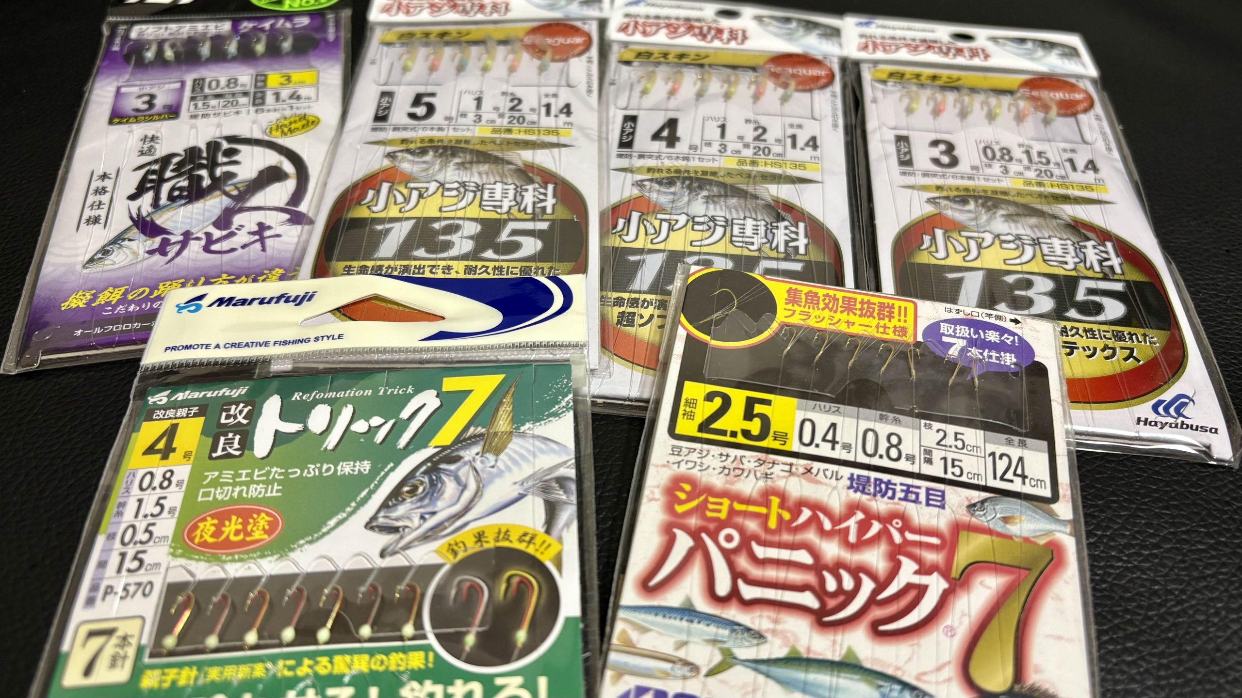 釣具屋に行くと無数のサビキ仕掛けが並んでいますが、どれも同じではありません。しっかりと選択することで釣果は確実に変わります。 針のサイズは、イワシから良型アジまで幅広く対応できる4号〜5号を基準に選ぶのがおすすめです。カタクチイワシは意外と口が大きいので、6号だろうが8号だろうが普通に掛かってきます。専門に狙うならともかく、アジと並行で狙うなら細かいことを気にする必要はありません。